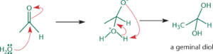 - In presence of water, aldehydes/ketones react to form germinal diols (1,1- diols)